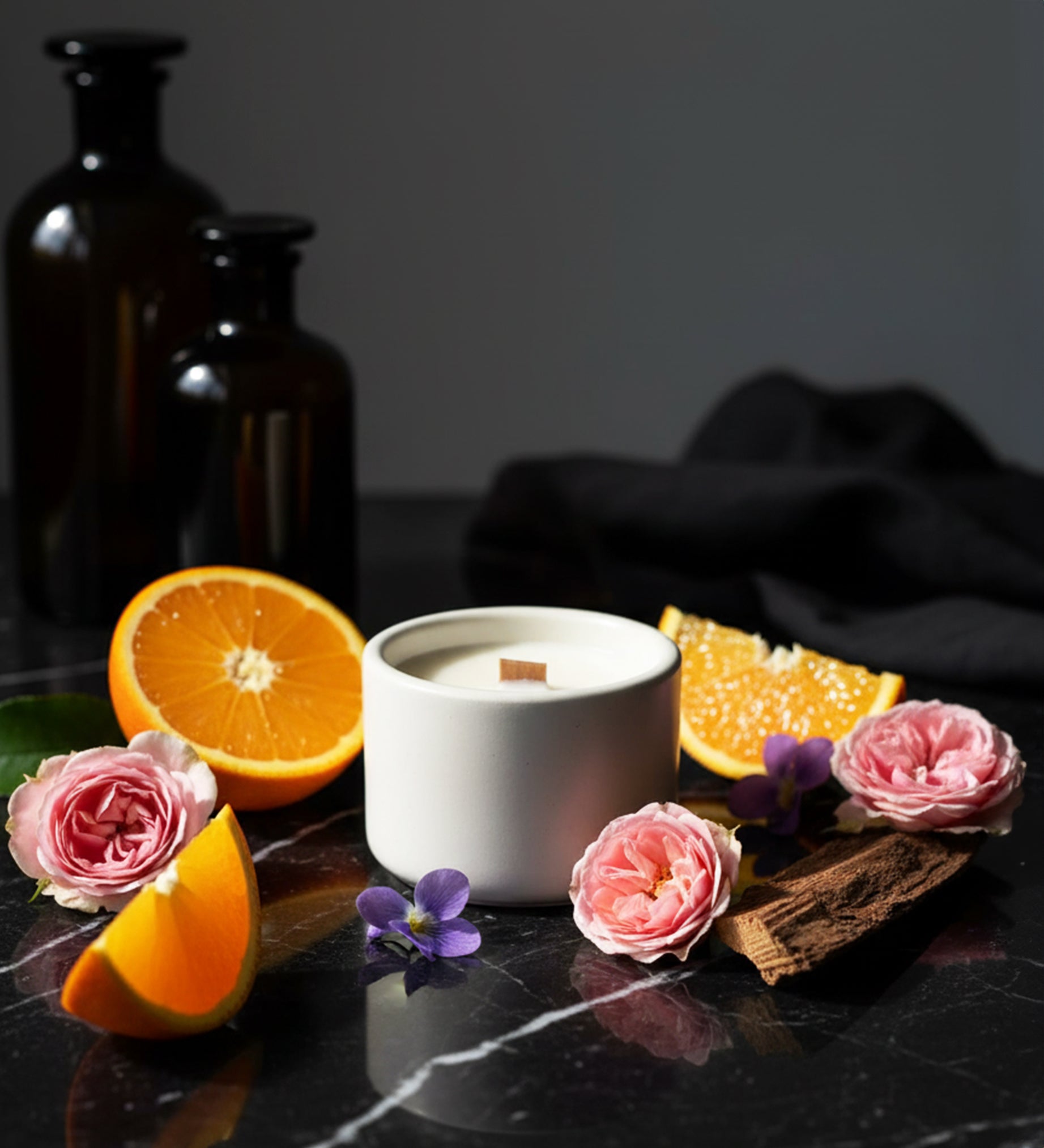 Make your space instantly memorable with Powder Room, a sophisticated fragrance that captures the essence of timeless elegance and impeccable hospitality. This clean, classic scent opens with sweet orange and airy ozone a burst of fresh brightness that feels both welcoming and refined. A heart of delicate violet, romantic rose, and soft orange blossom creates a floral bouquet that's graceful and understated. The foundation of soft powder and warm cedar adds just the right touch of depth and polish.